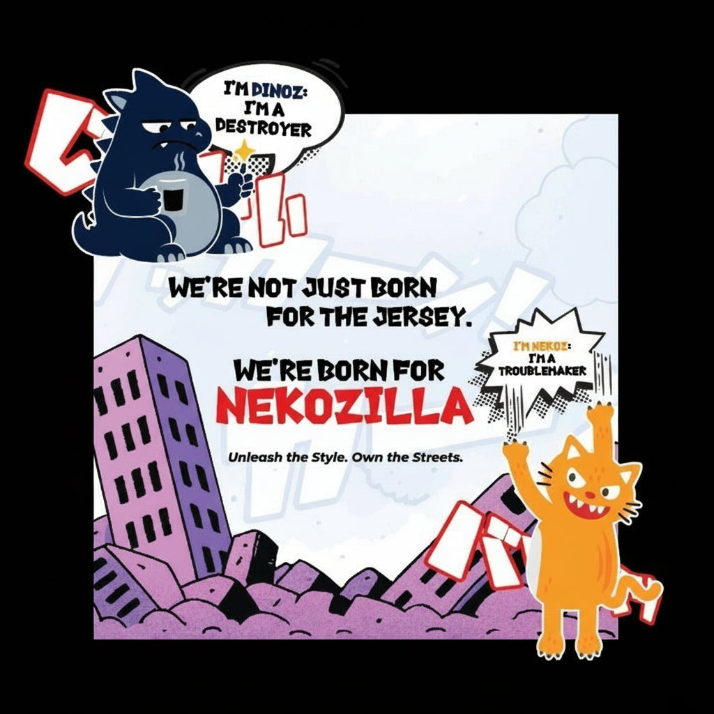 Crafted with premium materials and bold graphics, Nekozilla is built for everyday wear while making a statement wherever you go.